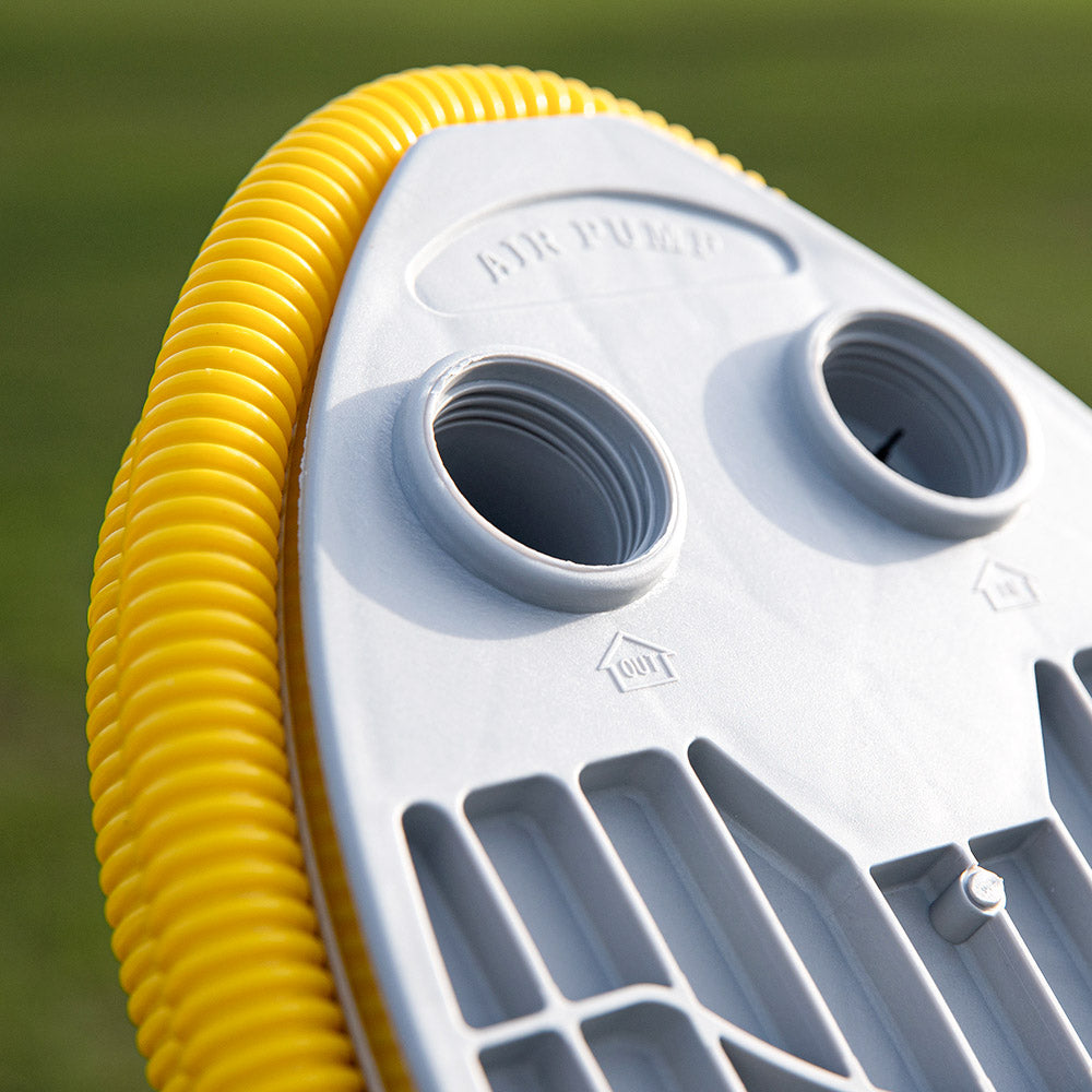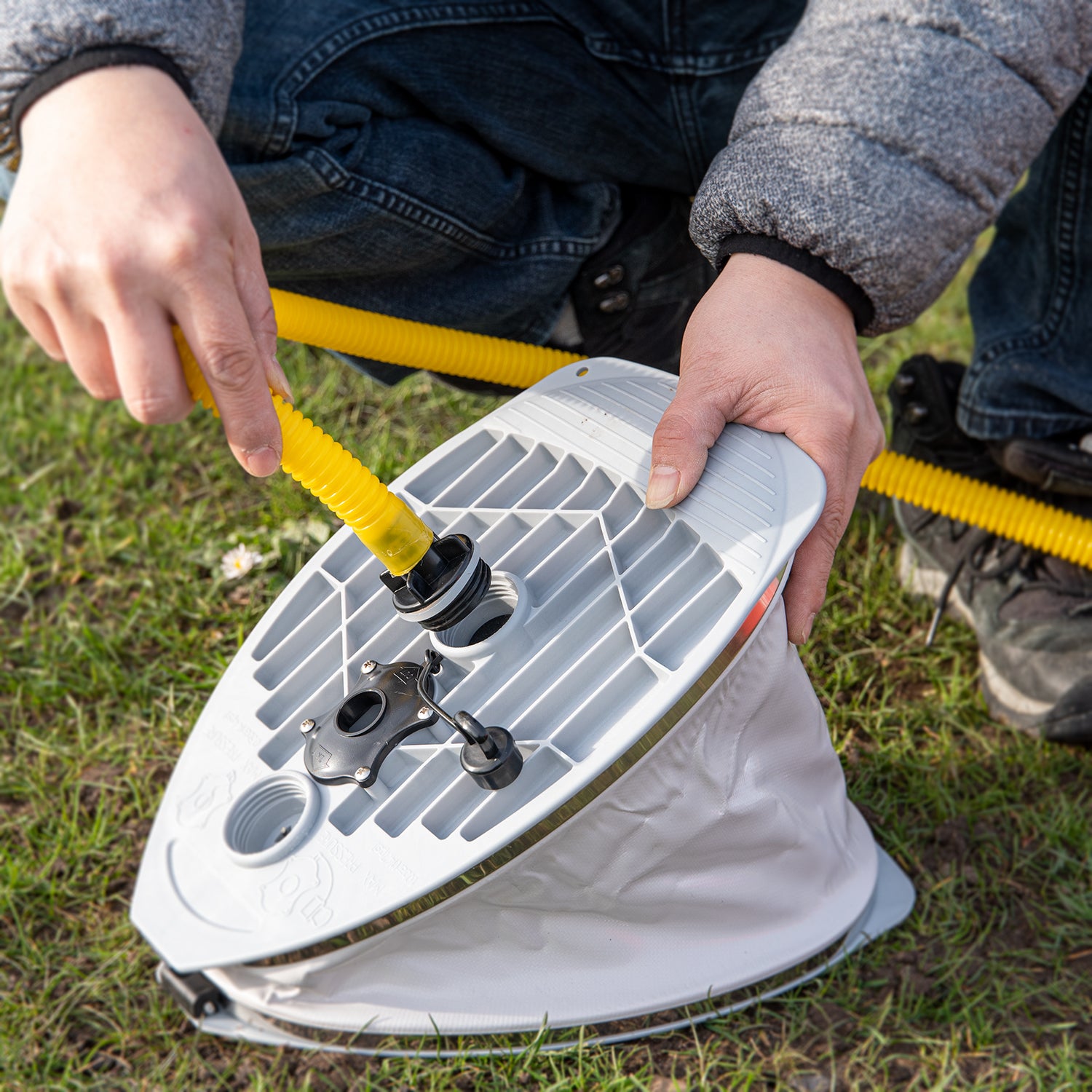 Double chamber system. High-volume-low-pressure mode (4.4 psi). Or low-volume high-pressure mode (14.5 psi).